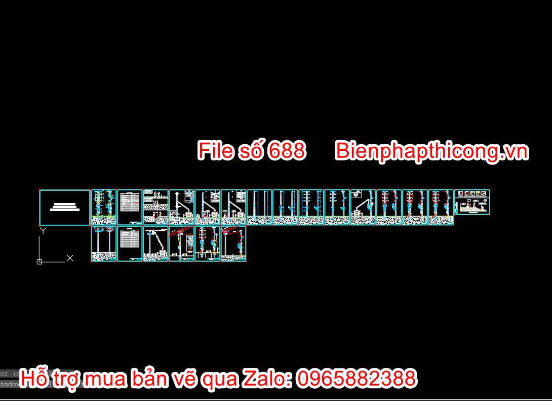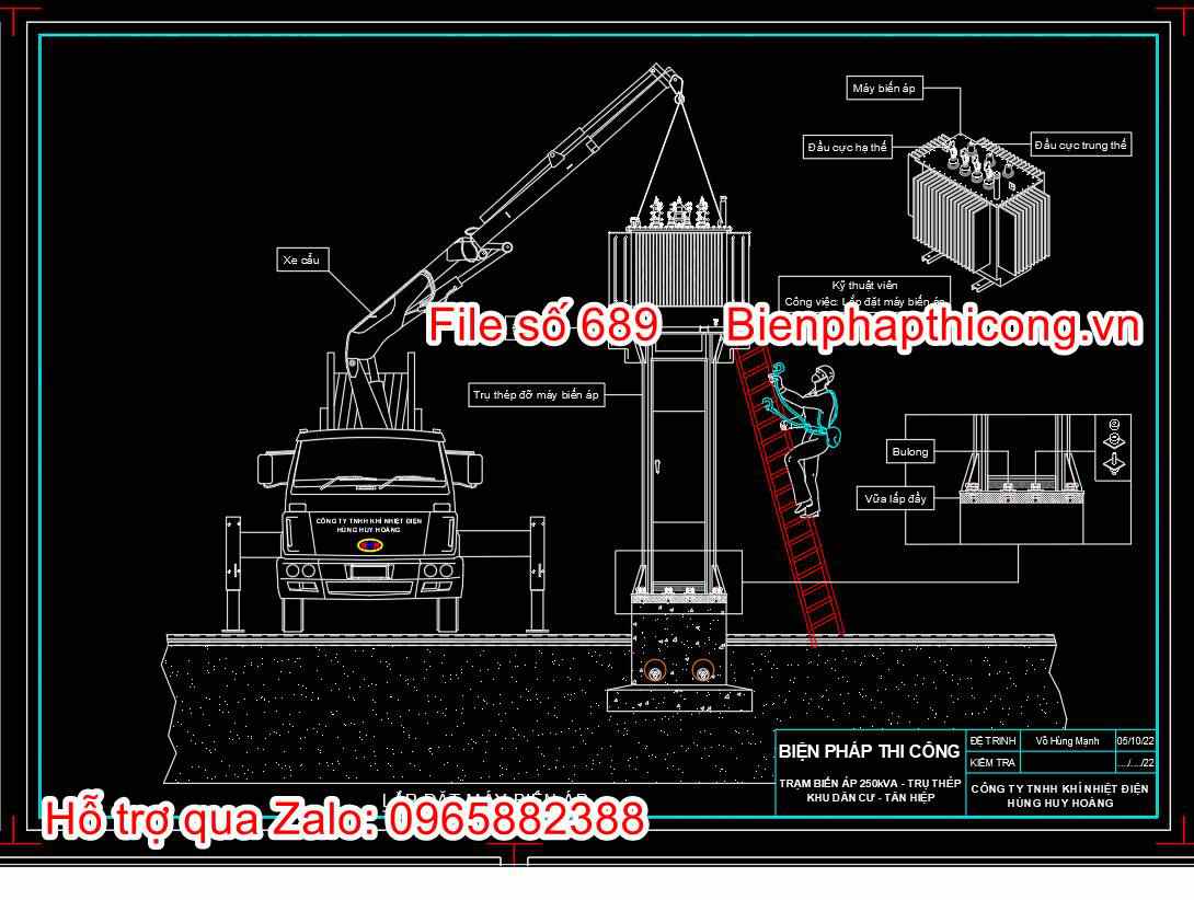 Bản vẽ biện pháp thi công trạm biến áp trụ thép 250kVA cad