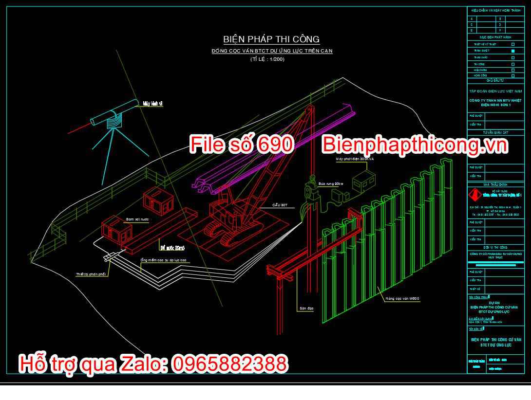 Bản vẽ biện pháp thi công cừ ván btct dự ứng lực cad