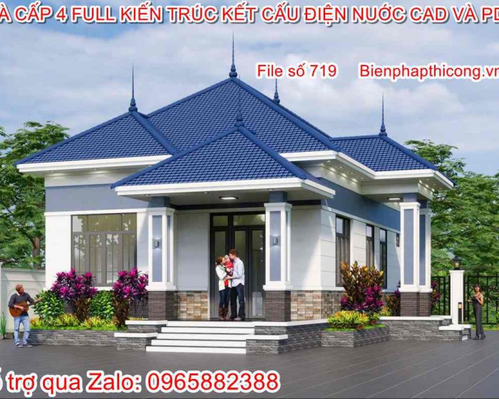 Hồ sơ thiết kế ngôi nhà cấp 4 1 tầng mái thái đẹp.