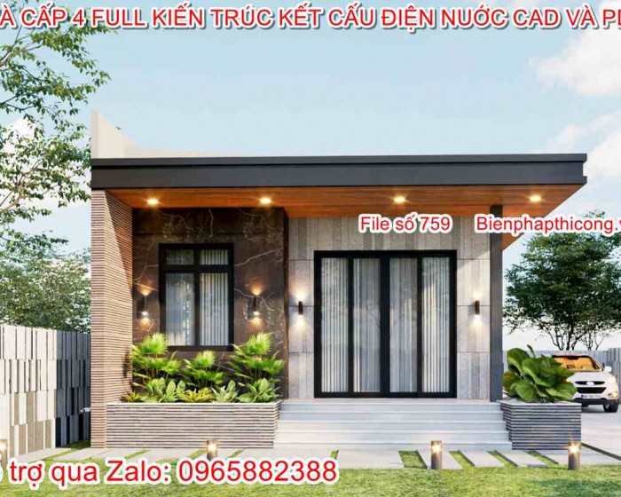 Tổng hợp bản vẽ thiết kế nhà biệt thự 1 tầng mái nhật.