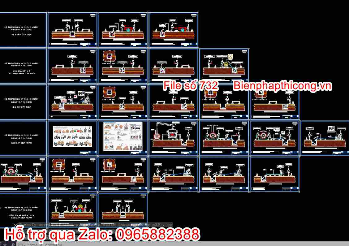 Bản vẽ biện pháp thi công kéo cáp điện hạ thế đi ngầm autocad