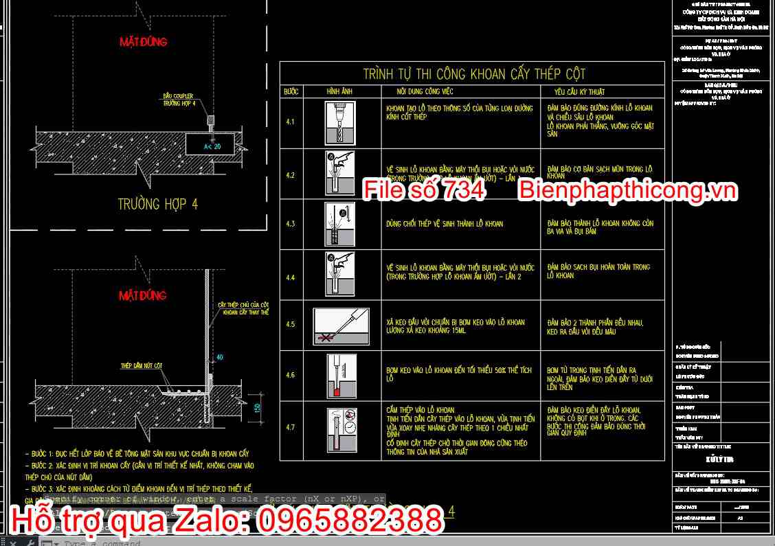 Bản vẽ biện pháp thi công xử lý thép chờ cột vách cad