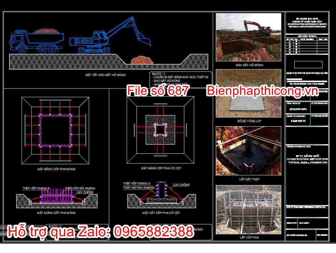 Bản vẽ biện pháp thi công móng đơn nhà ở cad hay