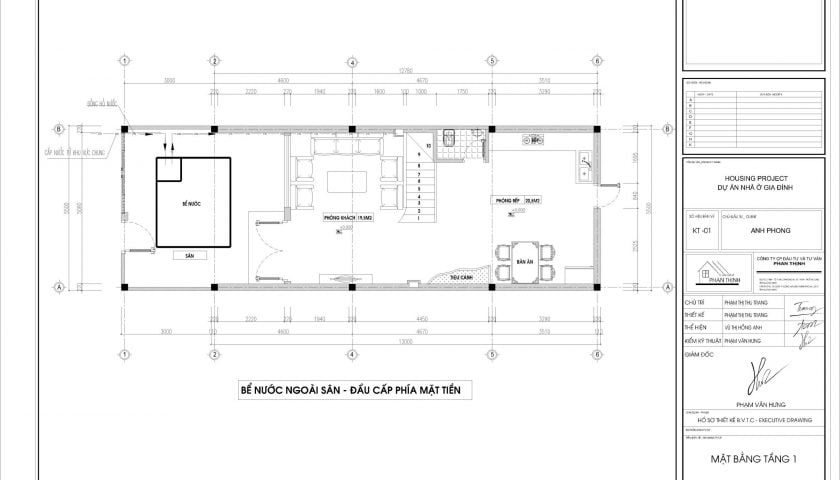 Khi đặt bể nước tại vị trí phòng bếp, khi đầu nguồn nước cấp lại ở phía mặt tiền, theo tư vấn thiết kế Phan Thịnh bạn không nên đặt bể nước ngầm tại vị trí phòng bếp trong trường hợp này: