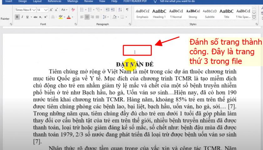 Trang 3 là trang đặt vấn đề, tôi sẽ hướng dẫn các bạn cách tạo số trang trong word 2016 bắt đầu từ trang số 3 này nhé.