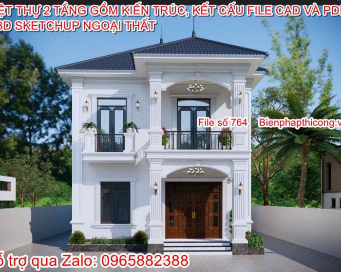Thư viện nhiều bản vẽ biệt thự file cad, sketchup