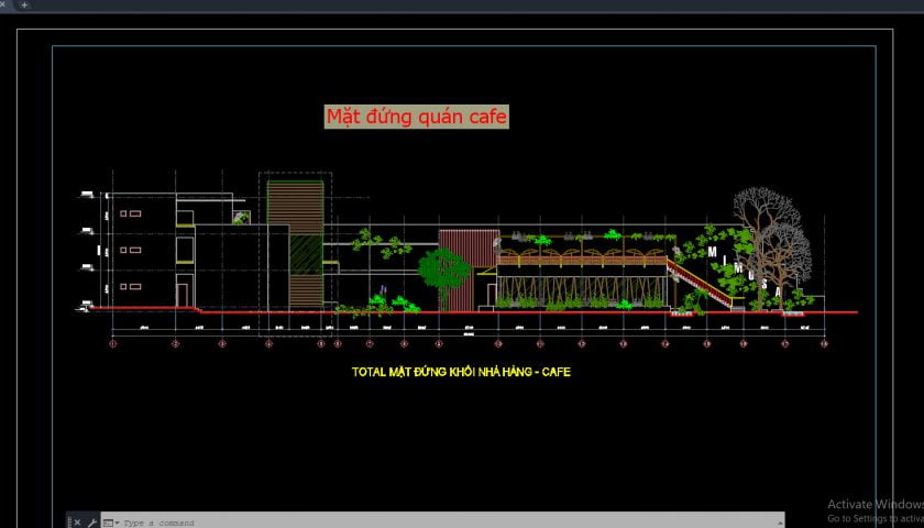 Bản vẽ thiết kế quán cafe nhà vườn số 6 autocad.