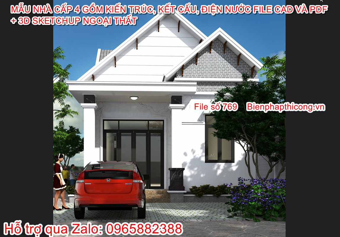 File thiết kế mẫu nhà cấp 4 mái thái 7m x 17,7m 3 ngủ cad
