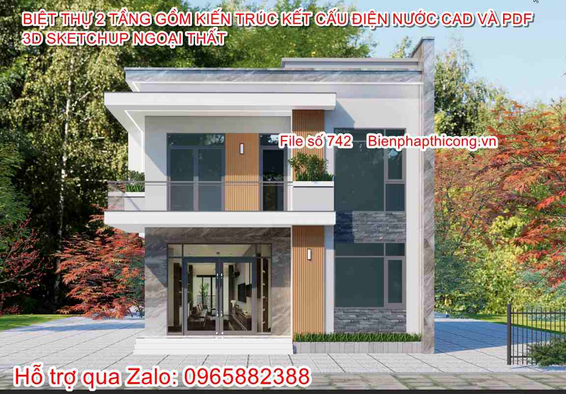 Hồ sơ bản vẽ cad biệt thự 2 tầng hiện đại 9m x 12,5m đẹp