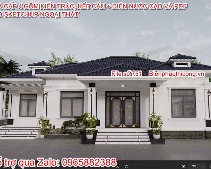 Thư viện nhiều bản vẽ biệt thự file cad, sketchup