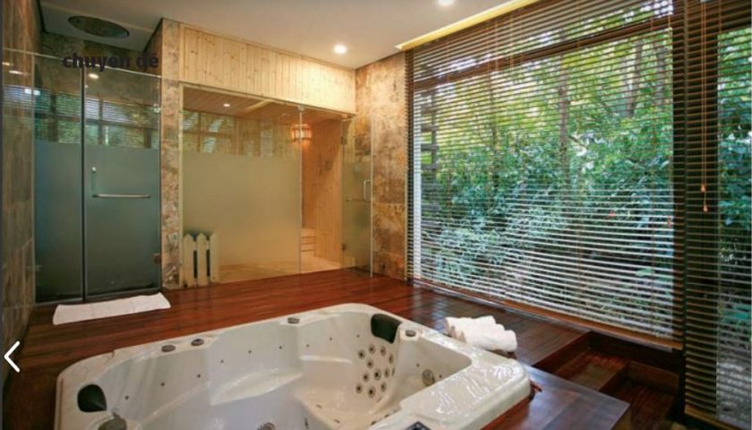 + Bồn sục jacuzzi . Đây là thiết bị cơ bản nhất có thể trang bị thay bồn tắm trong phòng tắm thông thường hay phòng spa chuyên biệt . Bồn sục jacuzzi được thiết kế với một hệ thống vòi sục khí trong nước , nằm ở thành bồn và đáy bồn , tạo nên tác động cơ học lên cơ thể người sử dụng . Bên cạnh hệ thống sục , thì bồn jacuzzi cũng được trang bị hệ thống chiếu sáng hay âm thanh để phục vụ cho việc giải trí , thư giãn . Bồn jacuzzi có rất nhiều loại hình dáng và kích thước lớn nhỏ khác nhau . Có loại bồn cá nhân và bồn tập thể – có thể ngồi được 4 – 5 người . Điều đáng lưu ý với thiết bị này là nguồn điện để vận hành . Vì vậy , nên nếu có ý định sử dụng bồn sục , trong quá trình thiết kế và thi công phải chờ nguồn điện tại vị trí bồn .