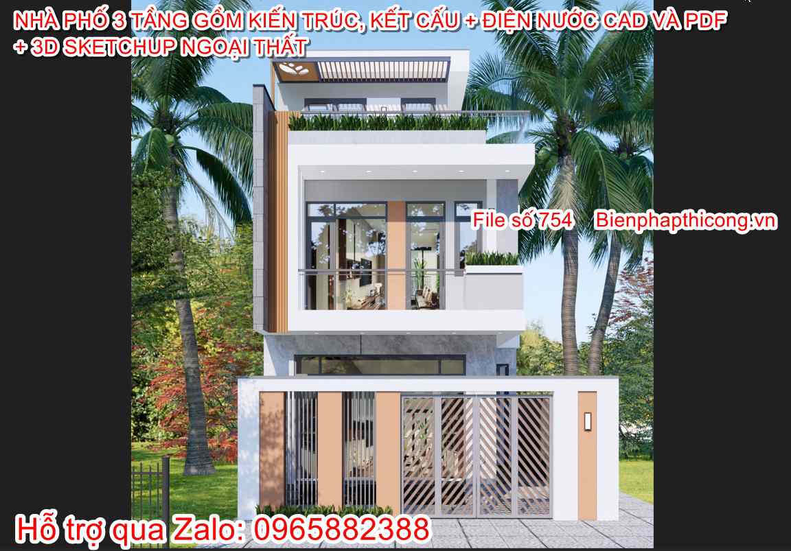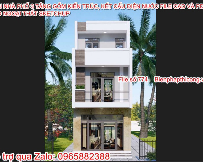 Tải bản vẽ nhà phố 3 tầng hiện đại 6,5m x 12m chữ L.