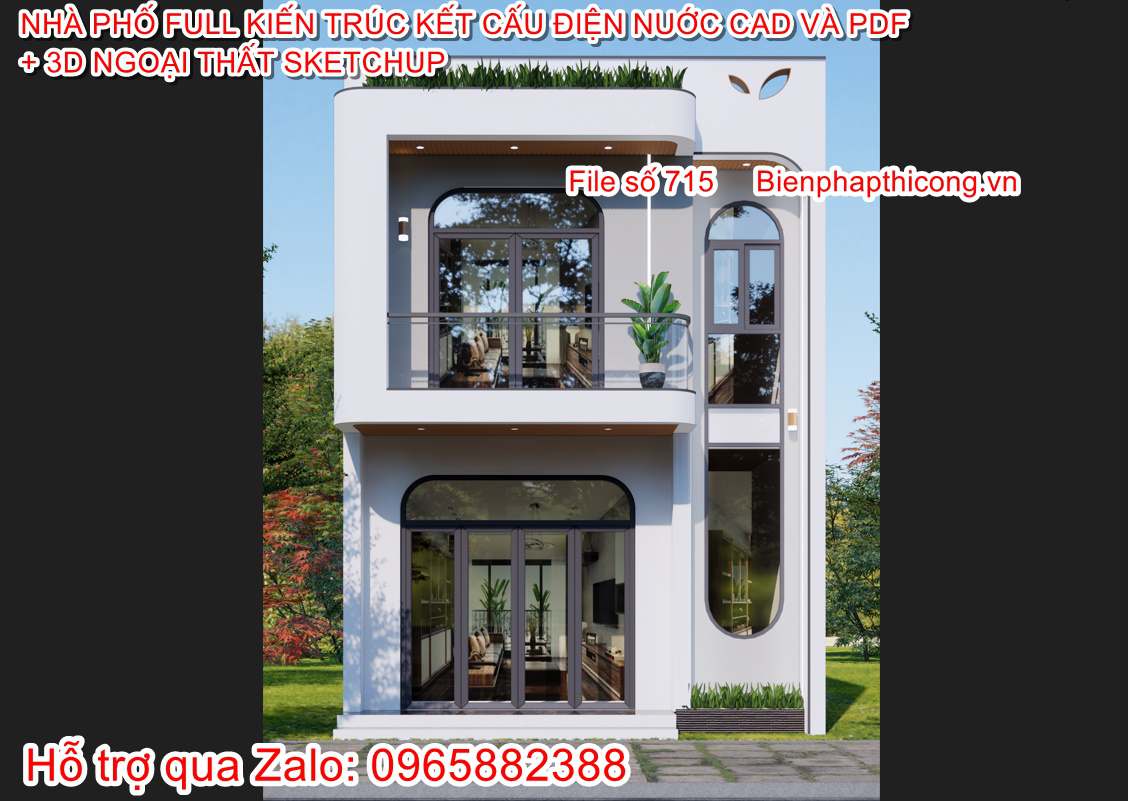Tải hồ sơ thiết kế bản vẽ nhà phố 2 tầng 6m x 12m full cad