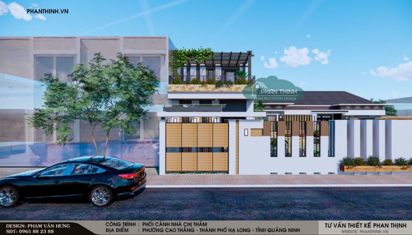 Thiết kế nhà phố đẹp tại Quảng Ninh , thiết kế phối cảnh sân thượng, L/H tư vấn: 0965882388.