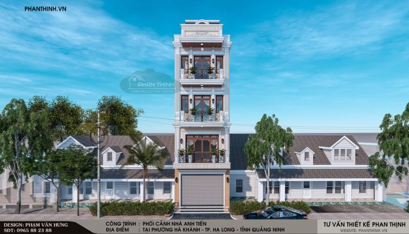 PHƯƠNG ÁN PHỐI CẢNH THIẾT KẾ XÂY DỰNG NHÀ Ở 4 TẦNG PHONG CÁCH CÁCH TÂN CỔ ĐIỂN TẠI QUẢNG NINH