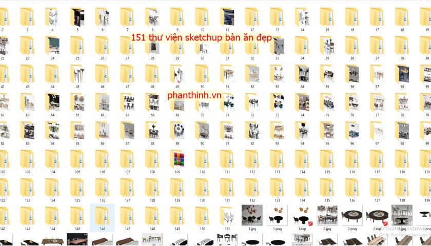 Phía trên là thư mục gồm 151 bản vẽ bàn ăn sketchup. Các bạn hãy tải về thư viện dining table về dùng các bạn nhé.